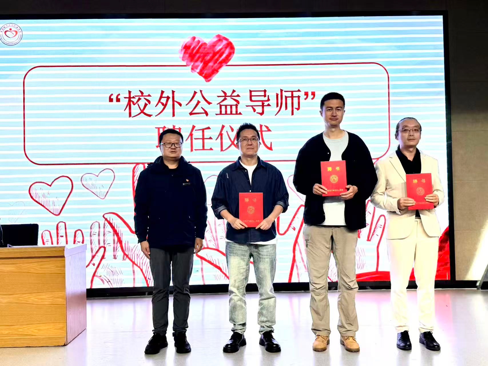 学校社会公益学院举行校外公益导师聘任仪式,学校党委副书记、社会公益学院院长为受聘专家颁发聘书。