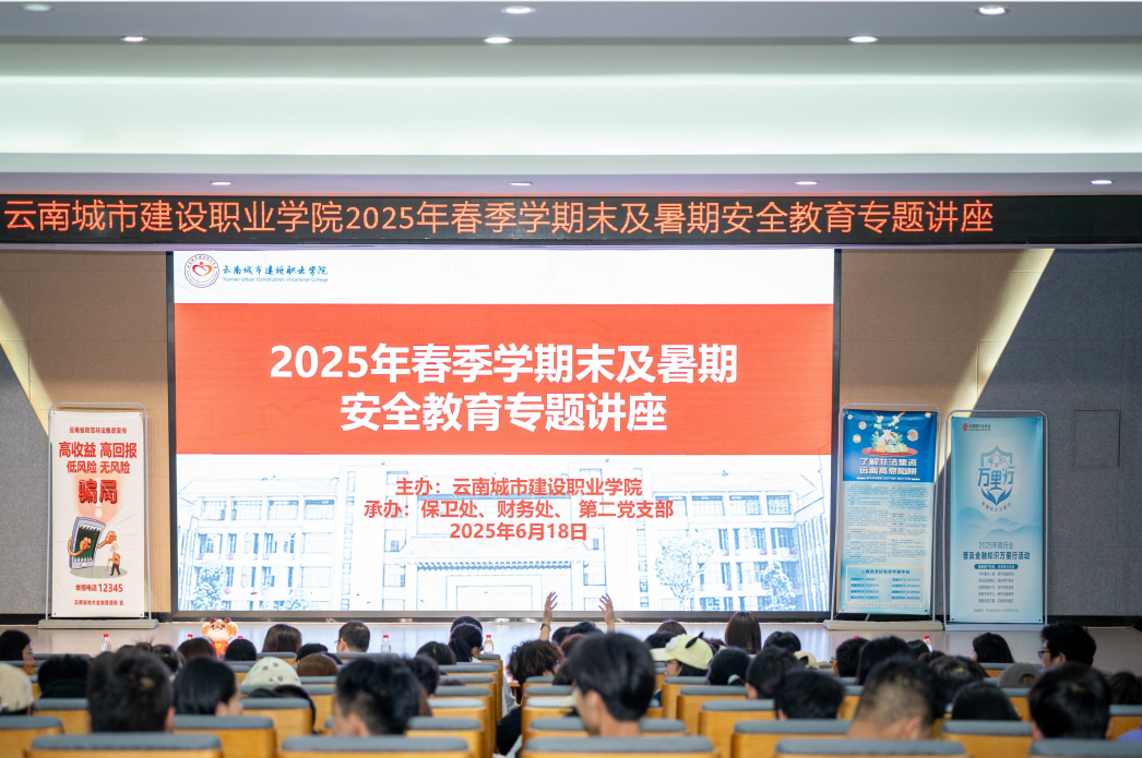 为切实做好2025年春季学期末及暑期安全教育工作,强化师生金融安全防范意识,6月18日,云南城市建设职业学院在教学楼115报告厅开展安全教育专题讲座,学校保卫处、财务处部门负责人,华夏银行昆明圆通支行相关人员及师生代表共计240余人参加。