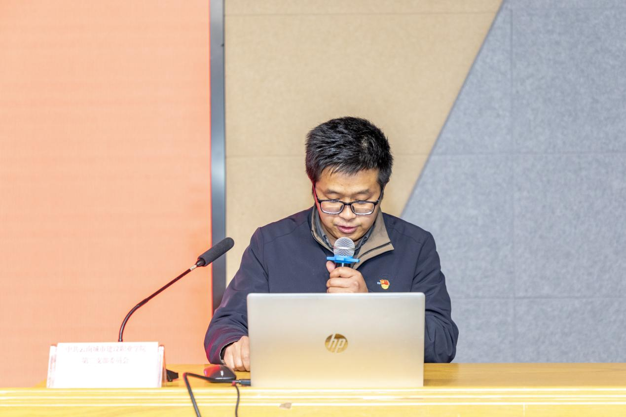 云南城市建设职业学院第二党支部书记黄哲,带领全体党员学习《中国共产党章程》,进一步增强党员身份意识与纪律观念。