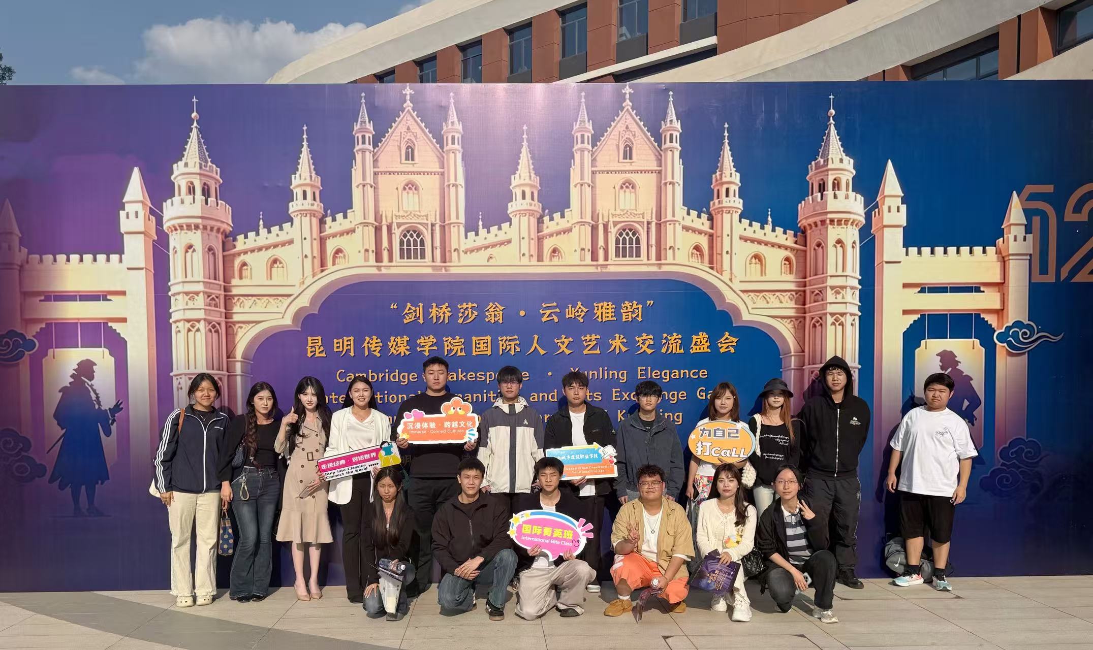 为深入推进国际化育人工作,丰富第二课堂实践载体,拓宽学生国际视野,提升英语应用能力与人文艺术素养,近日,学校国际教育学院组织国际菁英班学子代表赴昆明传媒学院,开展“剑桥莎翁·云岭雅韵”莎士比亚戏剧第二课堂实践活动。本次活动依托剑桥莎士比亚戏剧节剧团来华交流及经典剧目《第十二夜》展演,为师生带来一场沉浸式国际文化艺术盛宴。