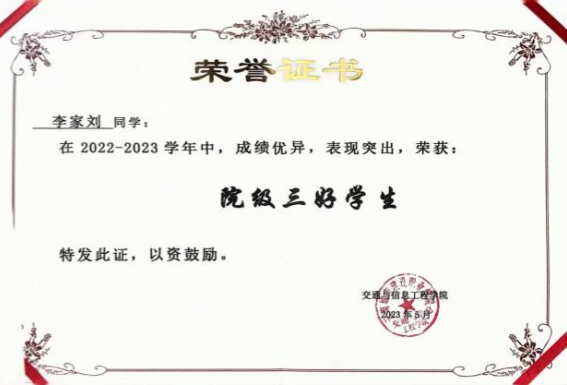 在校期间,李家刘始勤勉专注,在专业知识上刻苦钻研,为职业发展筑牢理论根基,先后获得院级“三好学生”、筑梦奖学金等荣誉。他还主动关注社会公益与基层发展,由此逐渐坚定了服务社会、投身基层的信念。这份责任与热忱,也为他后续加入西部计划、奔赴边疆埋下了伏笔。