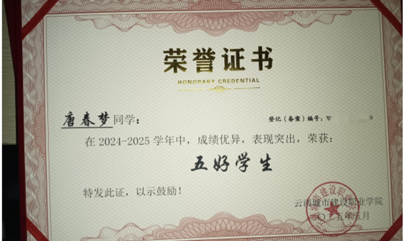 优秀学子风采丨云城建唐春梦:以专业践初心,以笃行赴征程