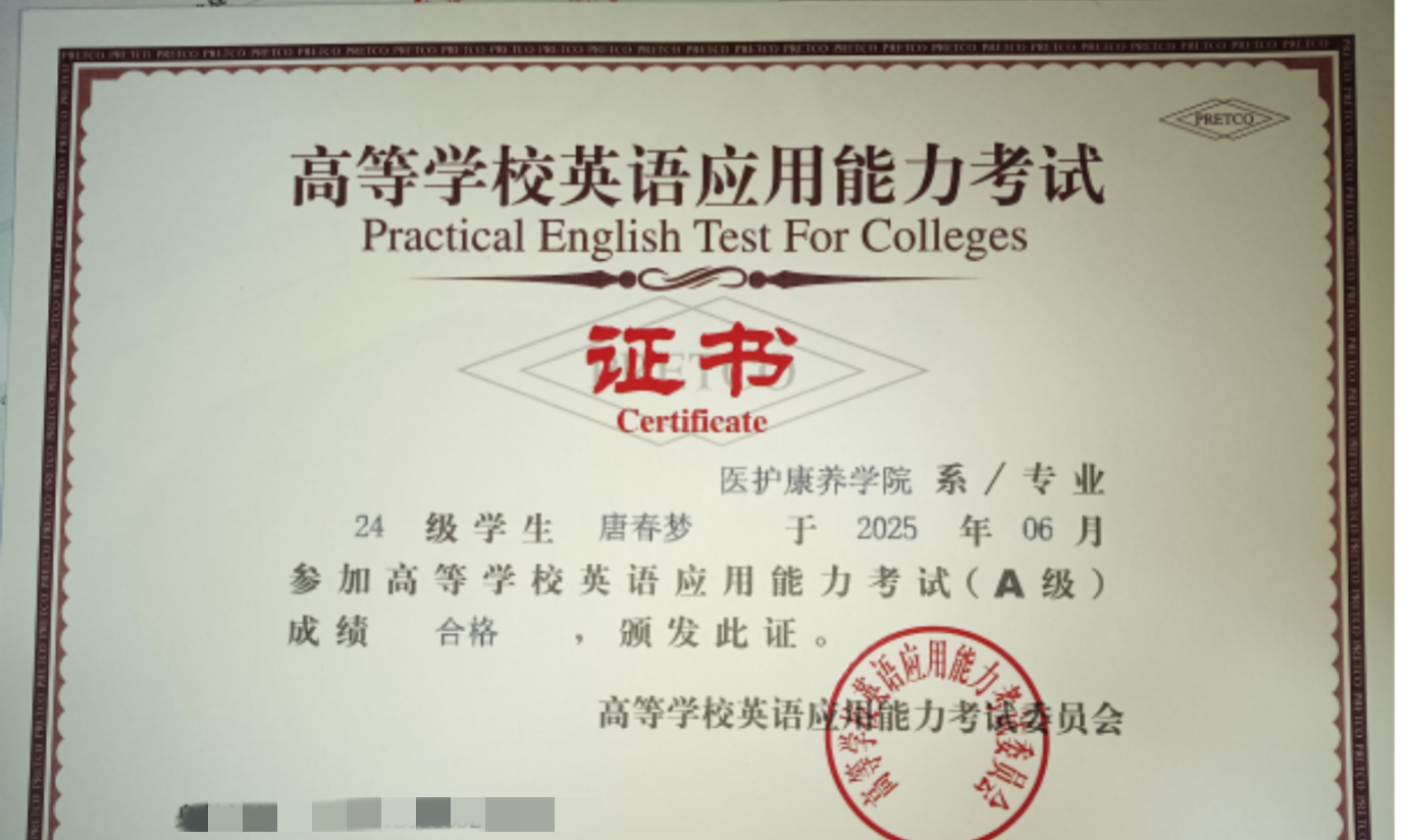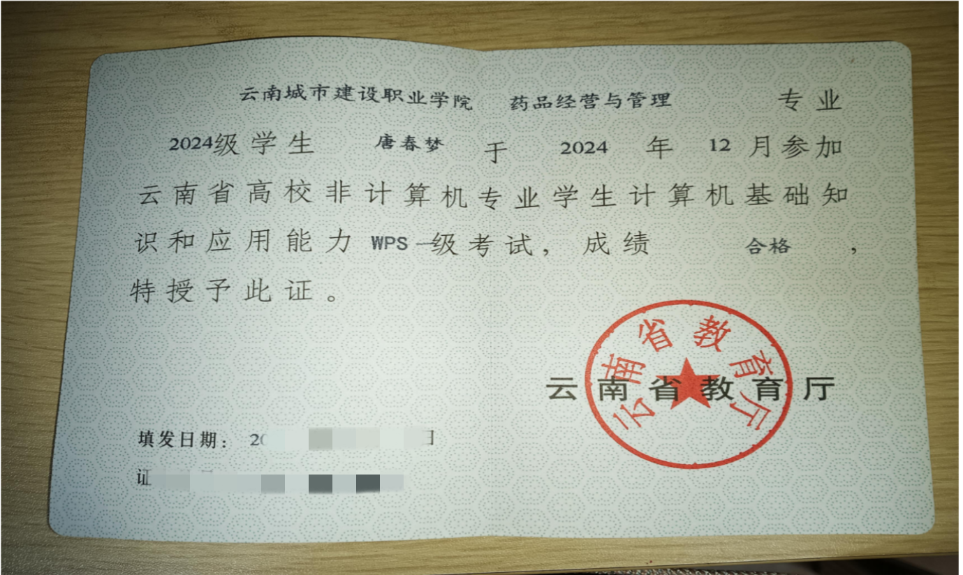 自入学以来,唐春梦始终将学业放在首位,将“保障用药安全、优化健康服务”的理念融入每一次学习与实践中。课堂上,她勤于思考,紧跟老师思路梳理知识脉络;课后,她主动查漏补缺,认真钻研药理学、药事管理、药店零售与服务技术等课程,专业成绩稳居年级前三,并先后考取医药商品购销员证书、高等学校英语应用能力考试(A级)证书、云南省高校计算机基础知识和应用能力WPS一级证书等,荣获2024-2025学年“国家励志奖学金”、校级“五好学生”等多项荣誉。