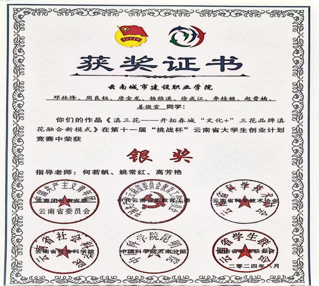 周良钰积极参与学科竞赛与实践活动,先后荣获“军训优秀学员”、迎新文艺汇演“优秀演职人员”、第十一届 “挑战杯” 云南省大学生创业计划竞赛“银奖”、云南省第十二届 “挑战杯” 大学生课外学术科技节“三等奖”。同时,他积极参与社会服务,累计志愿服务时长超400小时,荣获“优秀志愿者”“团学先进个人” 等多项荣誉。
